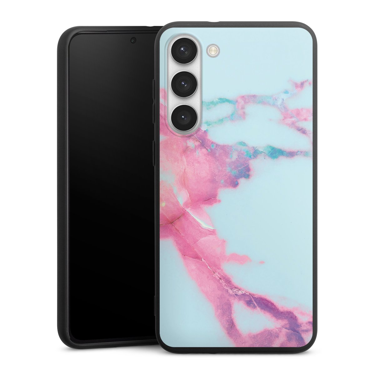 Die flexible Silikonhülle besteht aus robustem TPU (thermoplastisches Polyurethan). Durch das langlebige, bruchsichere Material ist die Hülle biegsam und formbeständig zugleich. Die All Black Edition liegt griffig in der Hand. Die matte Oberfläche lässt Dein Design noch besser zur Geltung kommen und ist weniger anfällig für Fingerabdrücke und Schmutz. Die Handyhülle ist in Mattschwarz erhältlich.