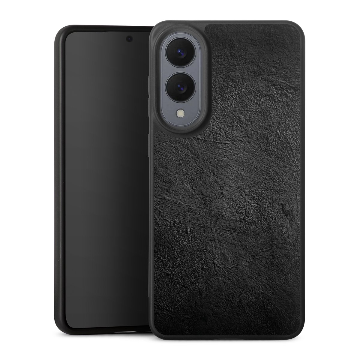 Die flexible Silikonhülle besteht aus robustem TPU (thermoplastisches Polyurethan). Durch das langlebige, bruchsichere Material ist die Hülle biegsam und formbeständig zugleich. Die All Black Edition liegt griffig in der Hand. Die matte Oberfläche lässt Dein Design noch besser zur Geltung kommen und ist weniger anfällig für Fingerabdrücke und Schmutz. Die Handyhülle ist in Mattschwarz erhältlich.