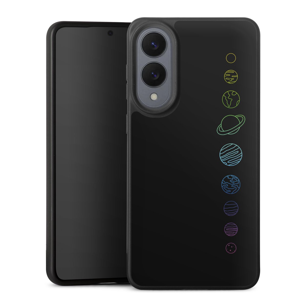 Die flexible Silikonhülle besteht aus robustem TPU (thermoplastisches Polyurethan). Durch das langlebige, bruchsichere Material ist die Hülle biegsam und formbeständig zugleich. Die All Black Edition liegt griffig in der Hand. Die matte Oberfläche lässt Dein Design noch besser zur Geltung kommen und ist weniger anfällig für Fingerabdrücke und Schmutz. Die Handyhülle ist in Mattschwarz erhältlich.