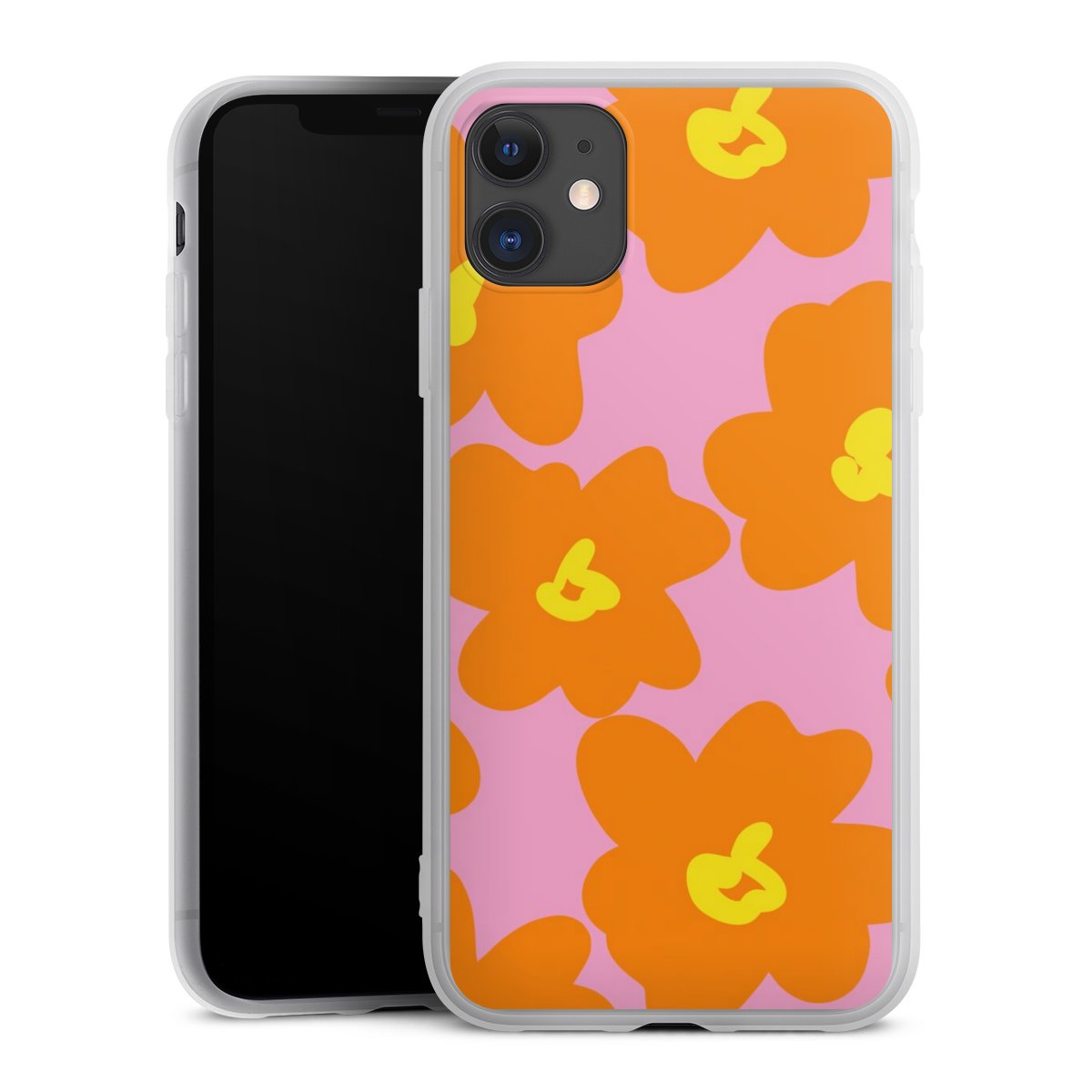 Retro Blumenmuster Pink und Orange