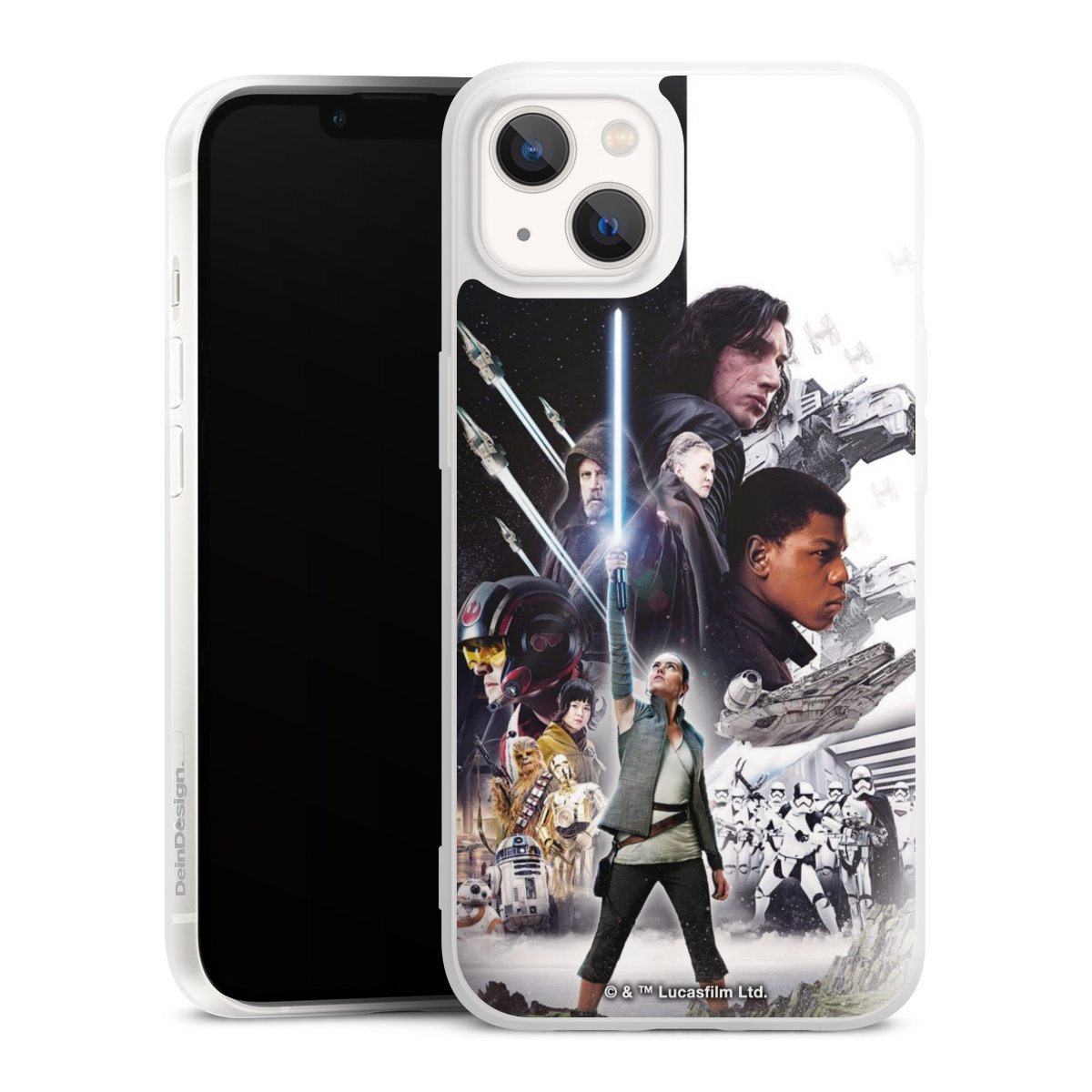 Darth Vader, C3PO, R2D2 und Meister Yoda findest Du in unserem Star Wars Shop auf DeinDesign. Natürlich gibt es auch Star Wars Handyhüllen mit den legendären Charakteren Luke Skywalker, Prinzessin Leia und Han Solo, den Helden der ersten Saga. Wer jedoch die Hauptfiguren der neuen Star Wars Filme ins Herz geschlossen hat, kann auch Finn und Rey mit ihren mächtigen Waffen auf der Rückseite seines Smartphones haben. Die vielseitigen Schutzhüllen in verschiedenen Ausführungen sind das perfekte Geschenk für alle Star Wars Fans, die ihrem Smartphone eine individuelle Note verleihen wollen.