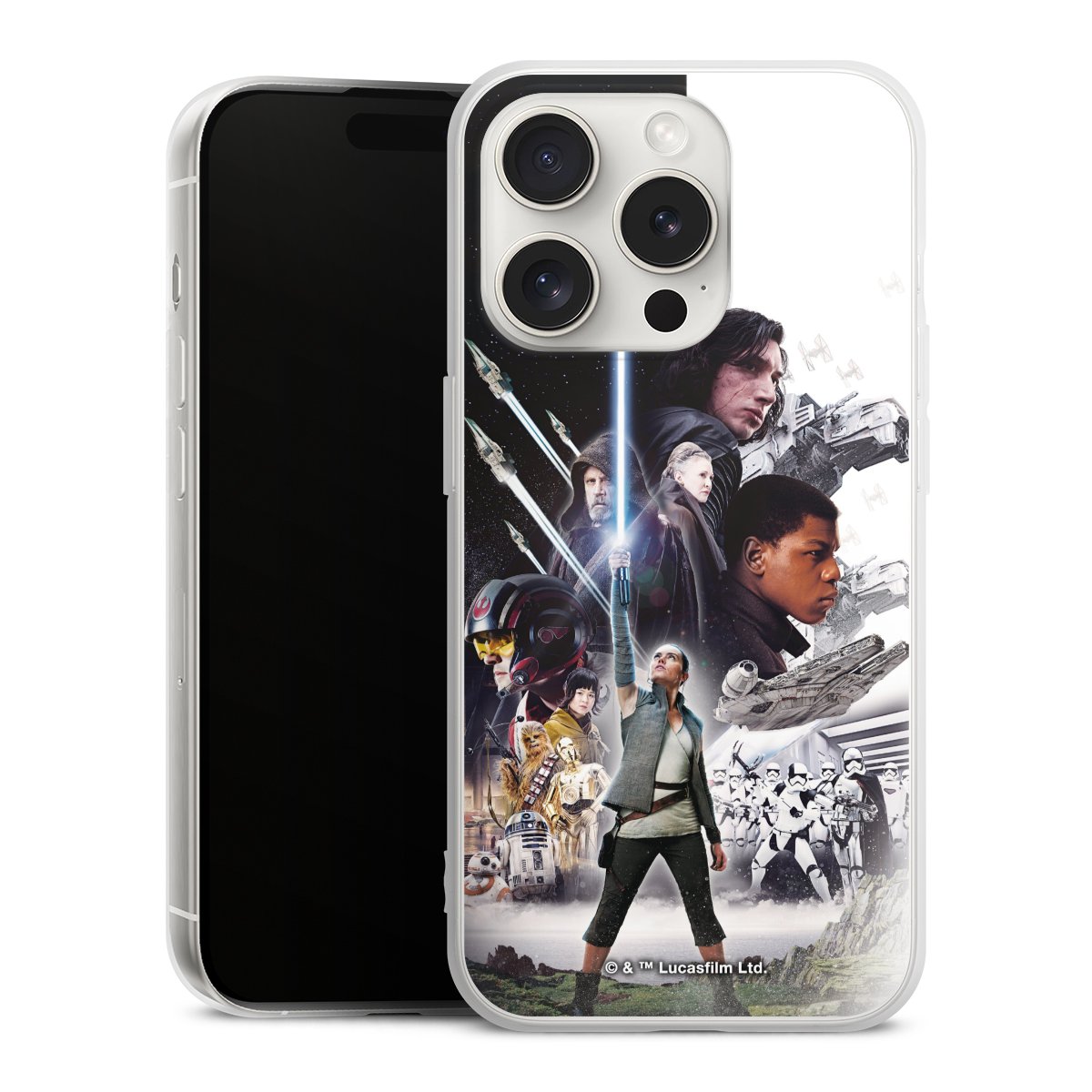 Darth Vader, C3PO, R2D2 und Meister Yoda findest Du in unserem Star Wars Shop auf DeinDesign. Natürlich gibt es auch Star Wars Handyhüllen mit den legendären Charakteren Luke Skywalker, Prinzessin Leia und Han Solo, den Helden der ersten Saga. Wer jedoch die Hauptfiguren der neuen Star Wars Filme ins Herz geschlossen hat, kann auch Finn und Rey mit ihren mächtigen Waffen auf der Rückseite seines Smartphones haben. Die vielseitigen Schutzhüllen in verschiedenen Ausführungen sind das perfekte Geschenk für alle Star Wars Fans, die ihrem Smartphone eine individuelle Note verleihen wollen.