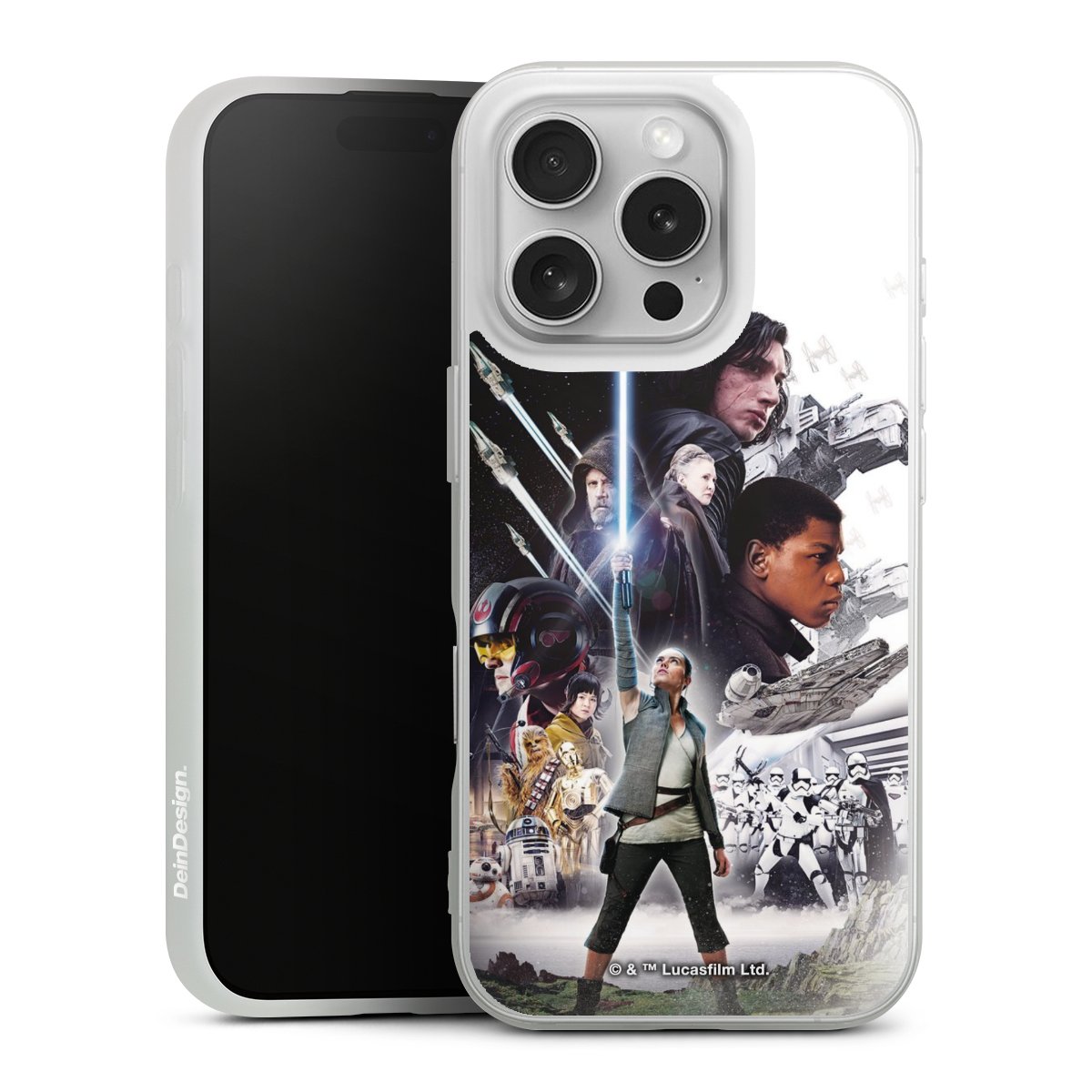 Darth Vader, C3PO, R2D2 und Meister Yoda findest Du in unserem Star Wars Shop auf DeinDesign. Natürlich gibt es auch Star Wars Handyhüllen mit den legendären Charakteren Luke Skywalker, Prinzessin Leia und Han Solo, den Helden der ersten Saga. Wer jedoch die Hauptfiguren der neuen Star Wars Filme ins Herz geschlossen hat, kann auch Finn und Rey mit ihren mächtigen Waffen auf der Rückseite seines Smartphones haben. Die vielseitigen Schutzhüllen in verschiedenen Ausführungen sind das perfekte Geschenk für alle Star Wars Fans, die ihrem Smartphone eine individuelle Note verleihen wollen.