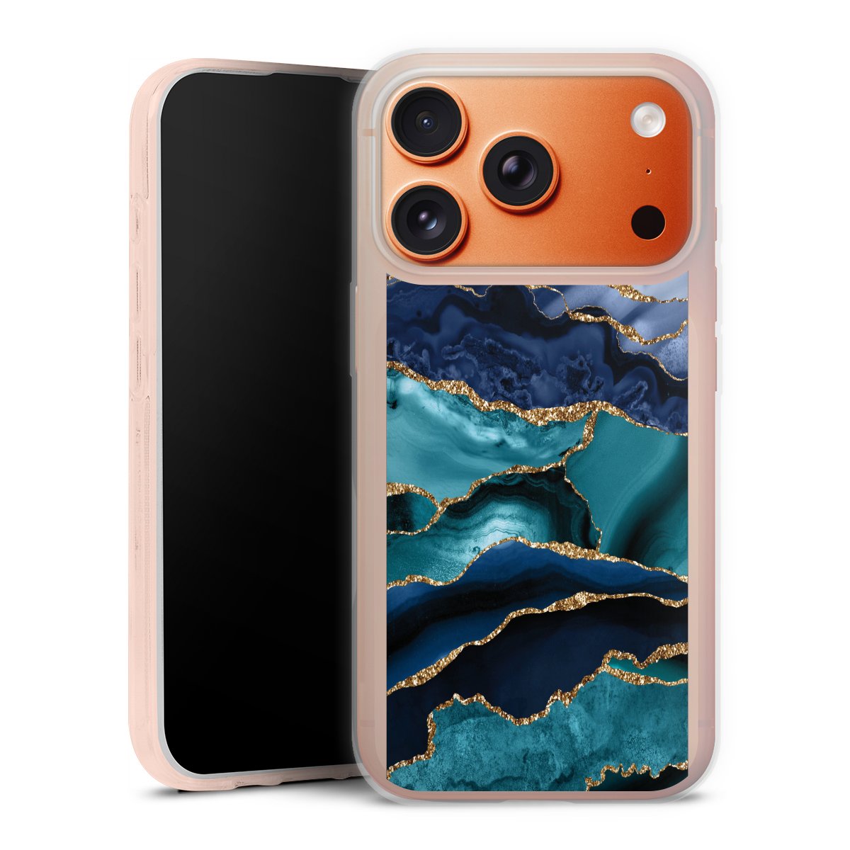 Dark and Light Blue Marble Gold Glitter Look