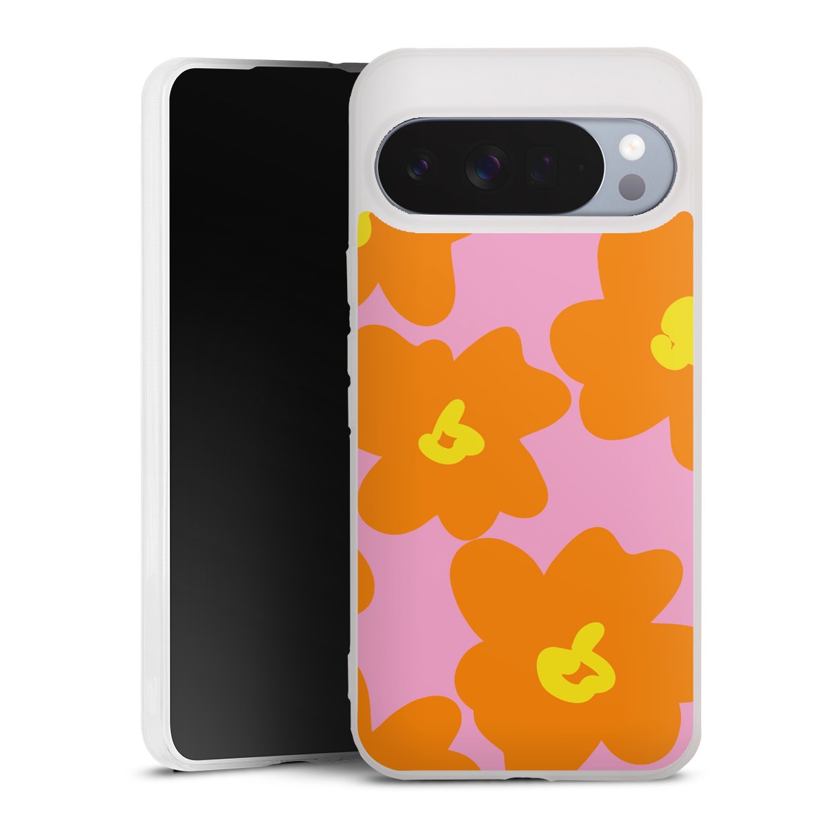 Retro Blumenmuster Pink und Orange
