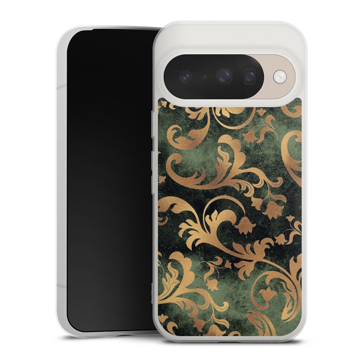 Damasttapete Dunkelgrün