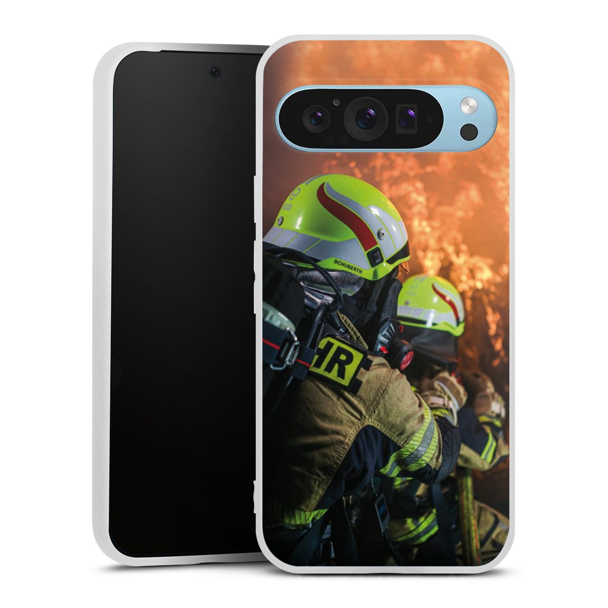Zwei Feuerwehrleute gegen das Feuer