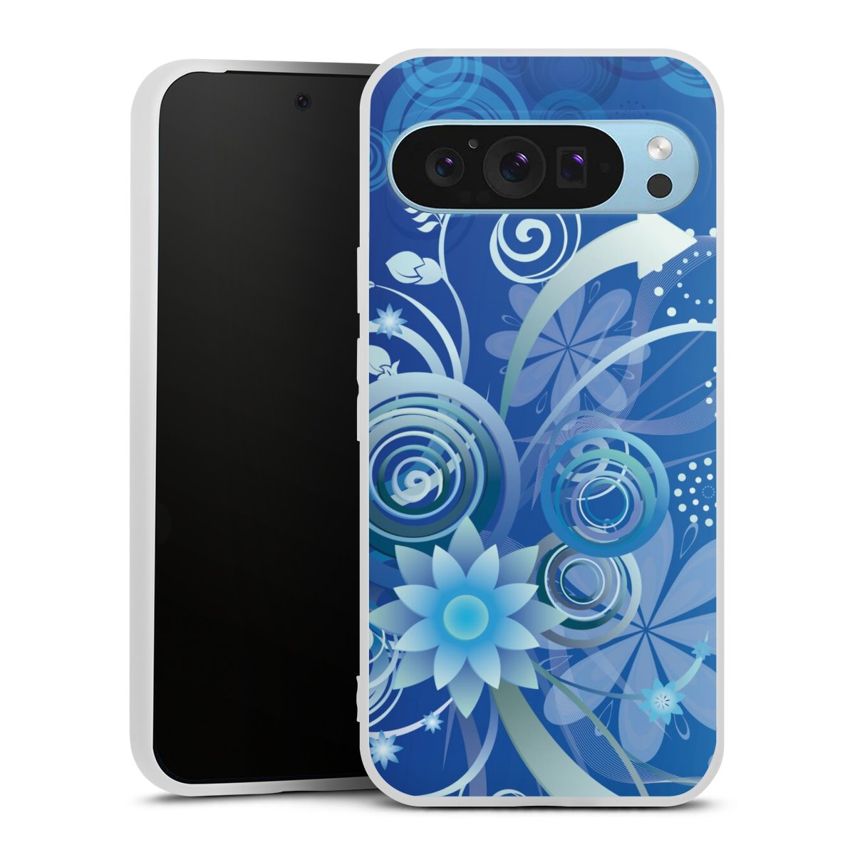 Blumen und Wirbel blau