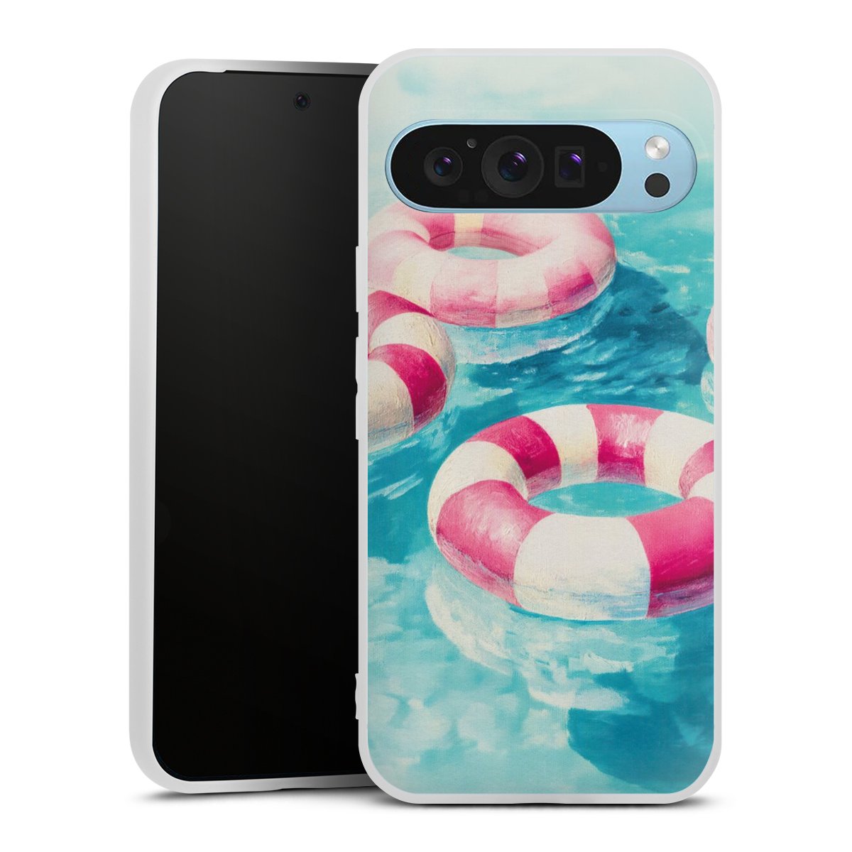 Gestreifte Schwimmringe im Pool