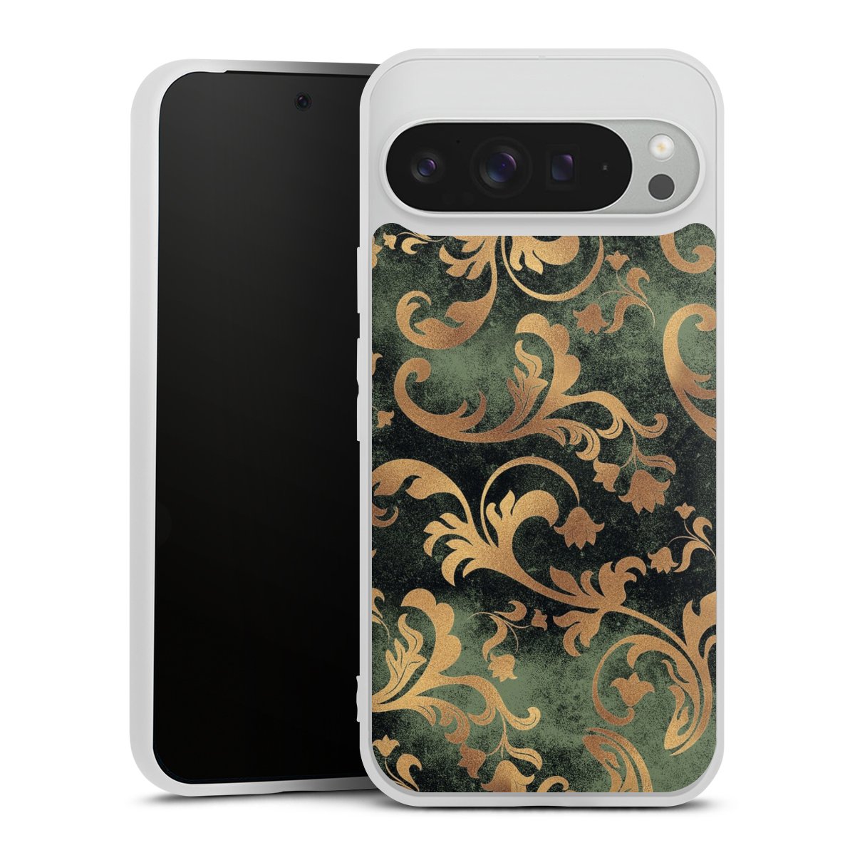 Damasttapete Dunkelgrün