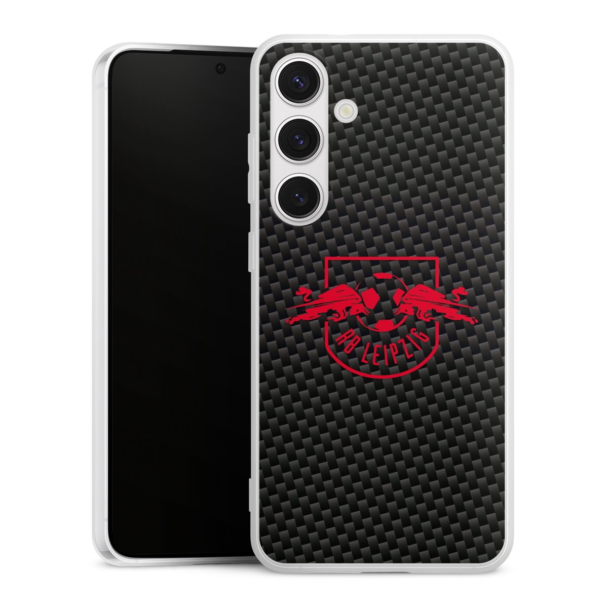 Rotes RB Leipzig Logo auf Carbonoptik