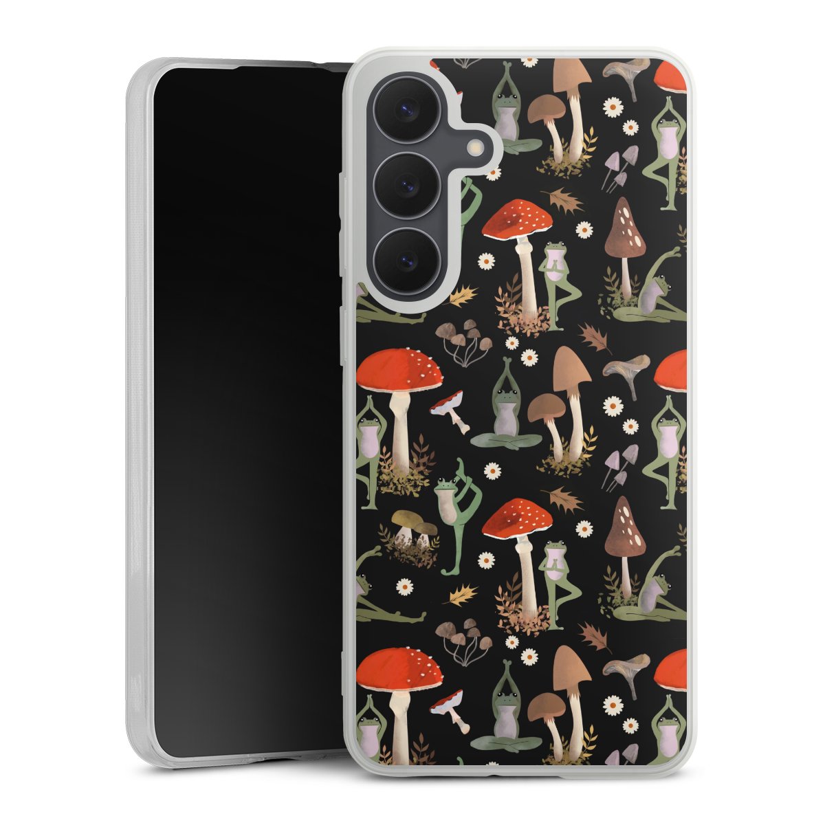 Yoga-Frösche mit Pilzen