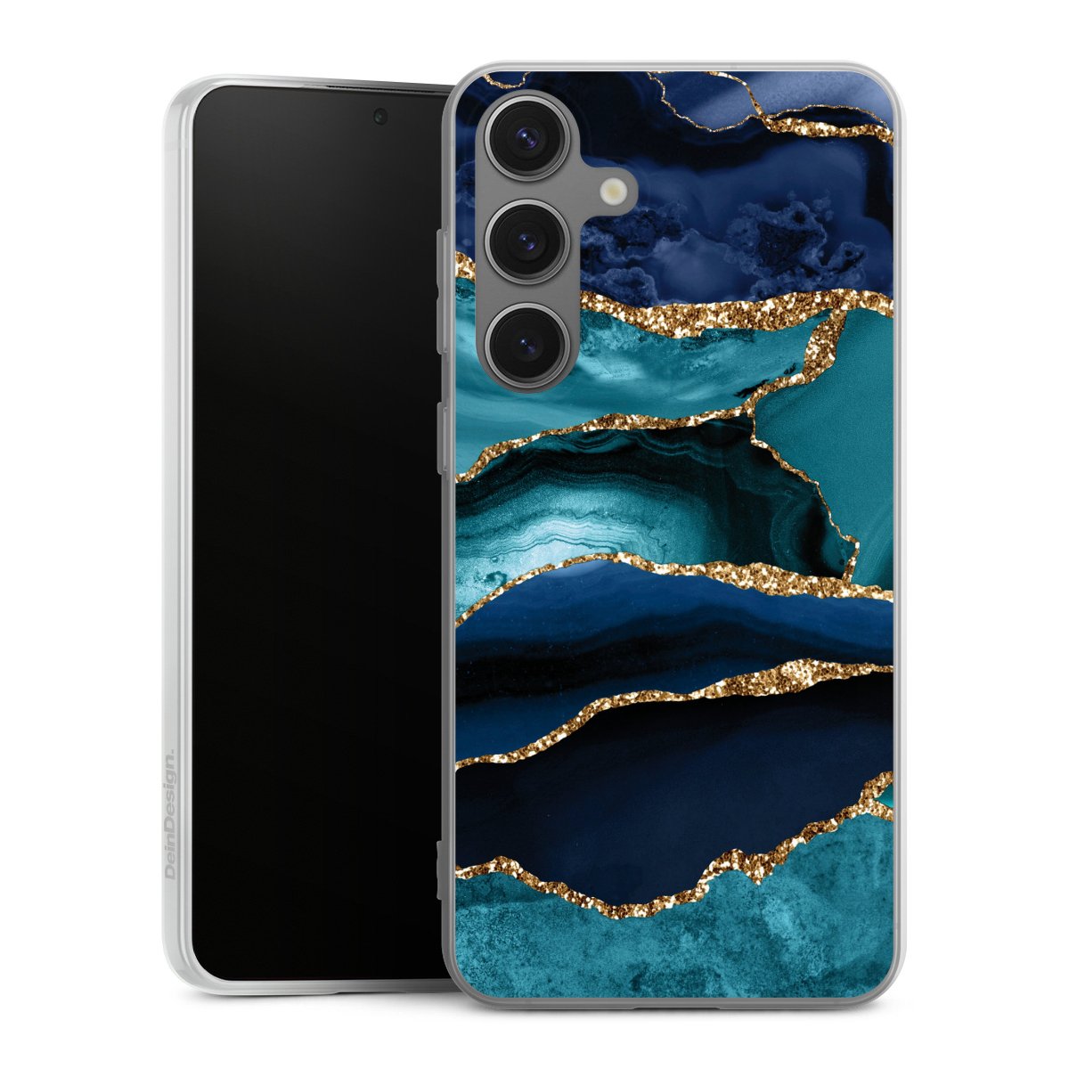 Dark and Light Blue Marble Gold Glitter Look