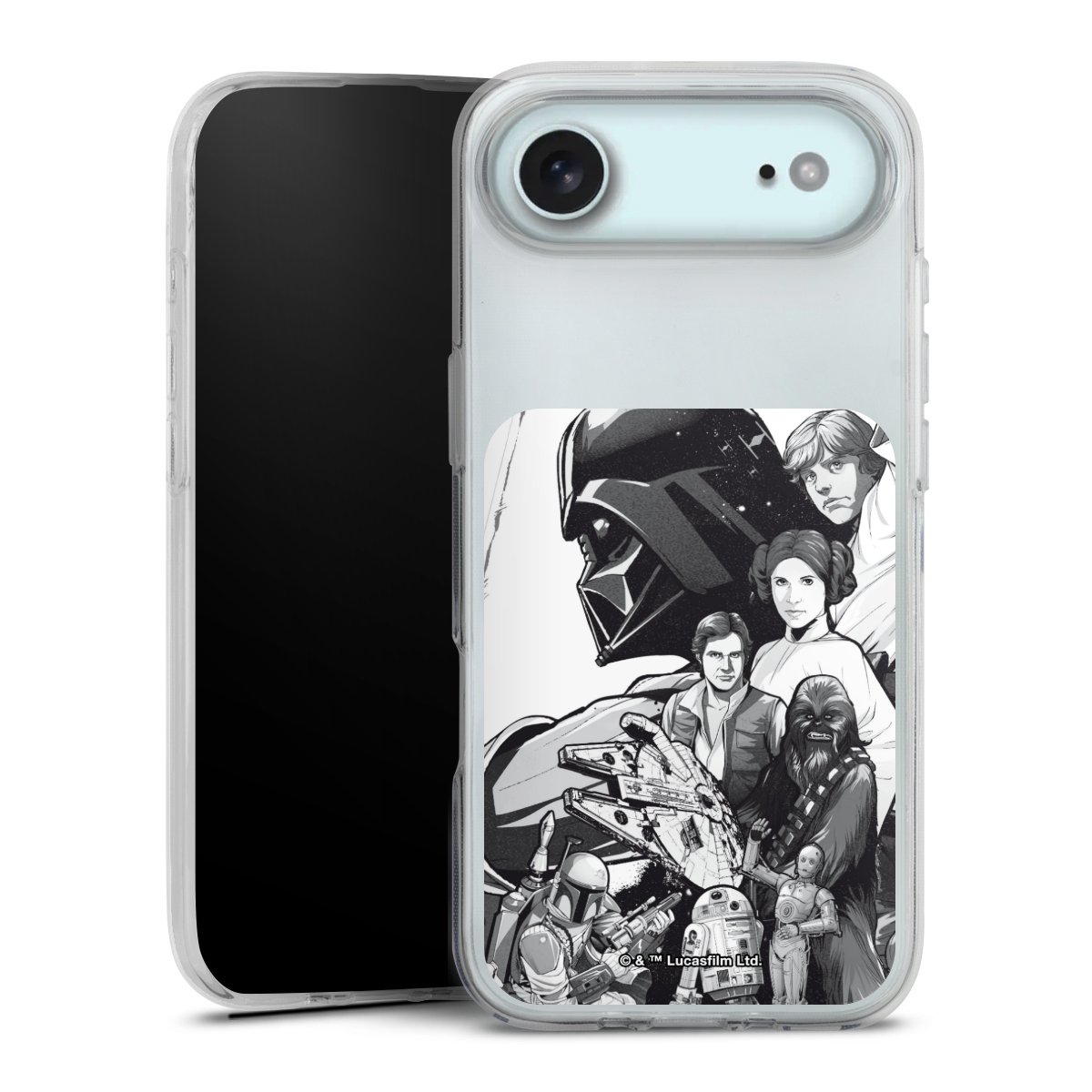 Darth Vader, C3PO, R2D2 und Meister Yoda findest Du in unserem Star Wars Shop auf DeinDesign. Natürlich gibt es auch Star Wars Handyhüllen mit den legendären Charakteren Luke Skywalker, Prinzessin Leia und Han Solo, den Helden der ersten Saga. Wer jedoch die Hauptfiguren der neuen Star Wars Filme ins Herz geschlossen hat, kann auch Finn und Rey mit ihren mächtigen Waffen auf der Rückseite seines Smartphones haben. Die vielseitigen Schutzhüllen in verschiedenen Ausführungen sind das perfekte Geschenk für alle Star Wars Fans, die ihrem Smartphone eine individuelle Note verleihen wollen.