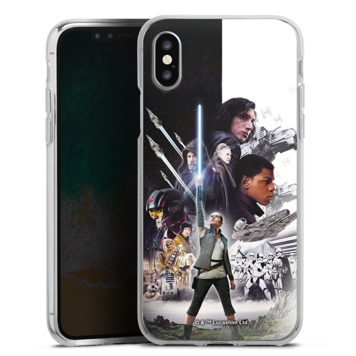 Darth Vader, C3PO, R2D2 und Meister Yoda findest Du in unserem Star Wars Shop auf DeinDesign. Natürlich gibt es auch Star Wars Handyhüllen mit den legendären Charakteren Luke Skywalker, Prinzessin Leia und Han Solo, den Helden der ersten Saga. Wer jedoch die Hauptfiguren der neuen Star Wars Filme ins Herz geschlossen hat, kann auch Finn und Rey mit ihren mächtigen Waffen auf der Rückseite seines Smartphones haben. Die vielseitigen Schutzhüllen in verschiedenen Ausführungen sind das perfekte Geschenk für alle Star Wars Fans, die ihrem Smartphone eine individuelle Note verleihen wollen.