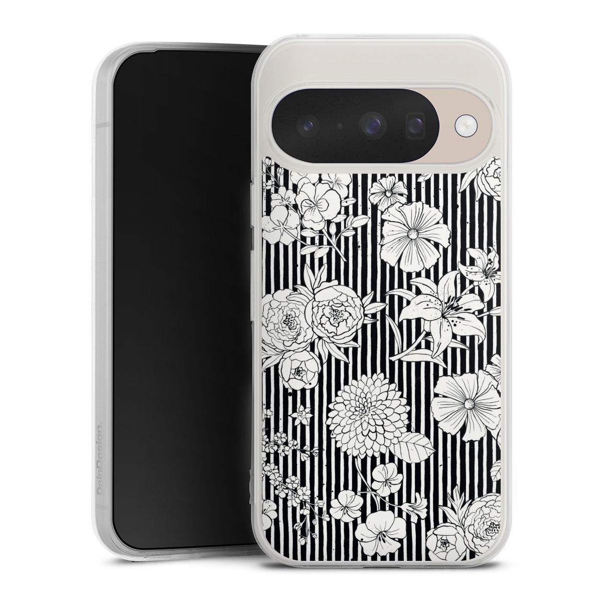 Blumen und Streifen Schwarz und Weiß