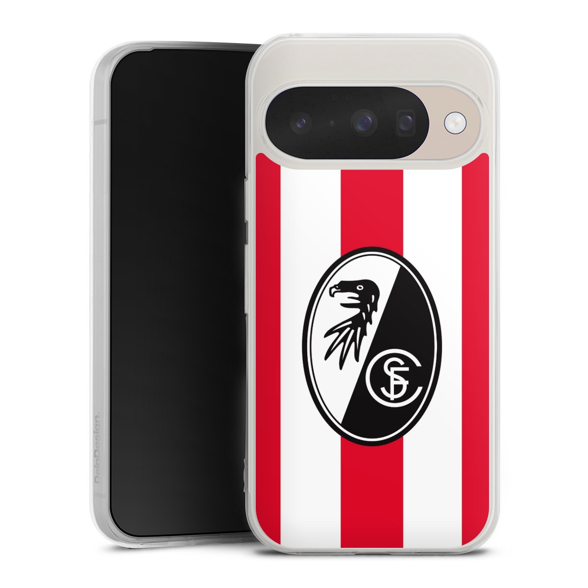 Bei DeinDesign kannst Du Dir eine individuelle SC-Freiburg-Handyhülle aussuchen, auf der das stilvolle schwarz-weiße Logo mit dem Greifenkopf zu sehen ist. Durch eine solche Hülle erhält Dein Smartphone ein unverkennbar individuelles Design. Der SC-Freiburg-Shop bietet lizensierte Fanartikel für alle Fans der Breisgau-Brasilianer.