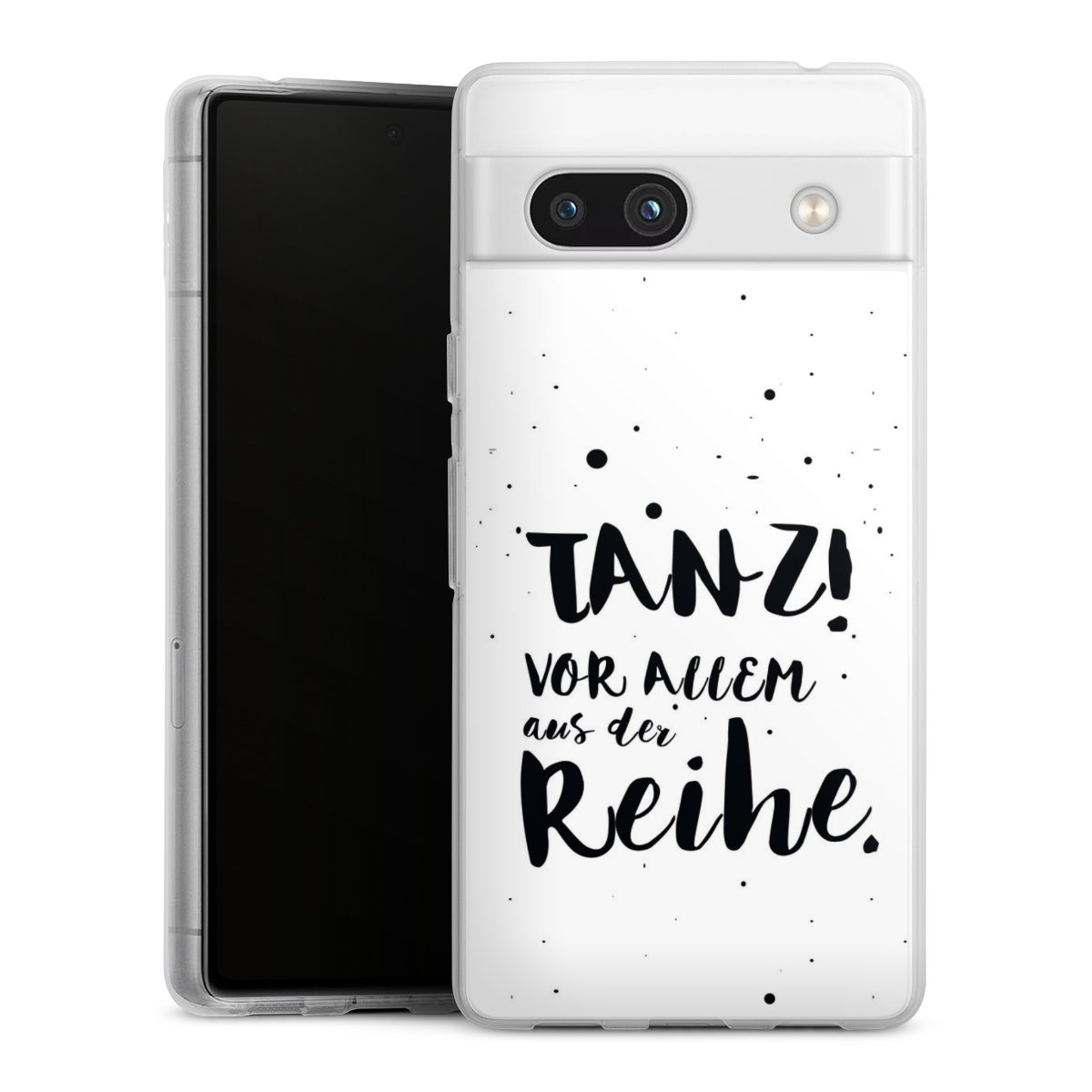 Die flexible Silikonhülle besteht aus robustem TPU (thermoplastisches Polyurethan). Durch das langlebige, bruchsichere Material ist die Hülle biegsam und formbeständig zugleich. Der Klassiker unter unseren Handyhüllen liegt griffig in der Hand. Die Hülle ist in den Farben Transparent, Schwarz und Weiß erhältlich.