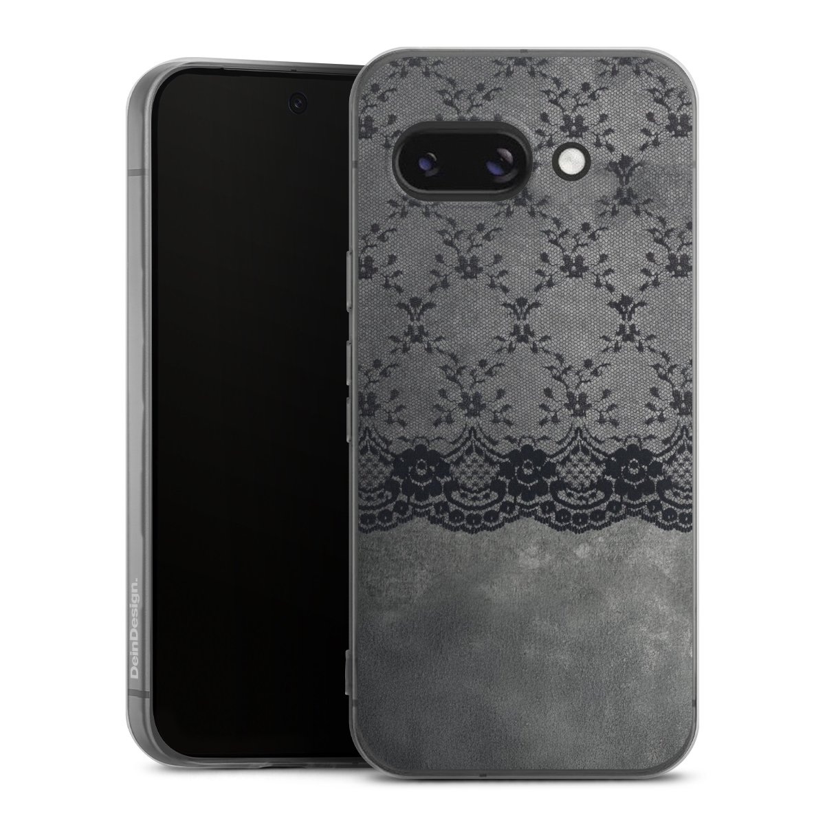 Schwarzes Spitzenmuster auf grauem Hintergrund