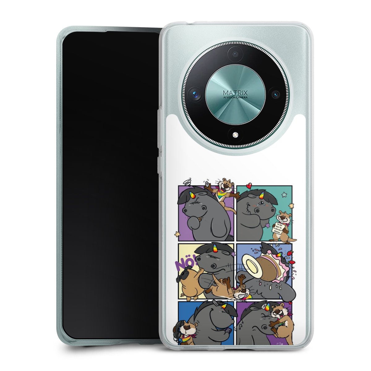 Die flexible Silikonhülle besteht aus robustem TPU (thermoplastisches Polyurethan). Durch das langlebige, bruchsichere Material ist die Hülle biegsam und formbeständig zugleich. Der Klassiker unter unseren Handyhüllen liegt griffig in der Hand. Die Hülle ist in den Farben Transparent, Schwarz und Weiß erhältlich.