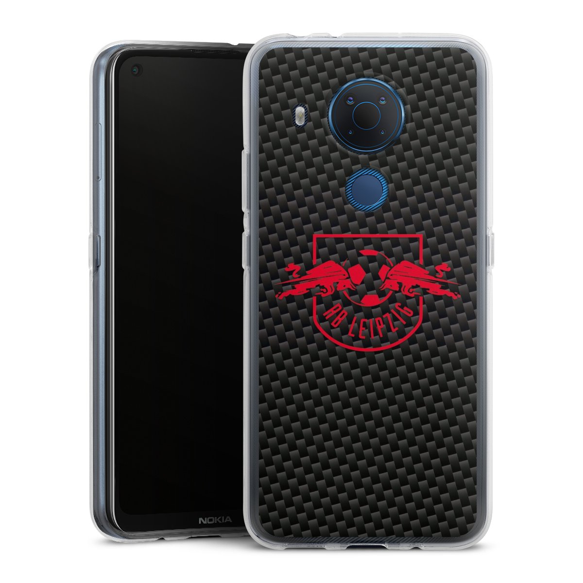 Rotes RB Leipzig Logo auf Carbonoptik
