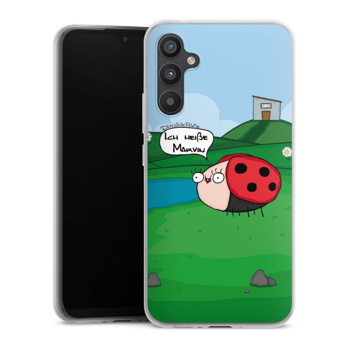 Ob Du Dich nun für Marvin, Günther das Schaf oder doch lieber für die dauerbekiffte Cannabiene entscheidest. Mit einem Motiv von DirtyWhitePaint wird Dein Smartphonen selbst zum Comic.
