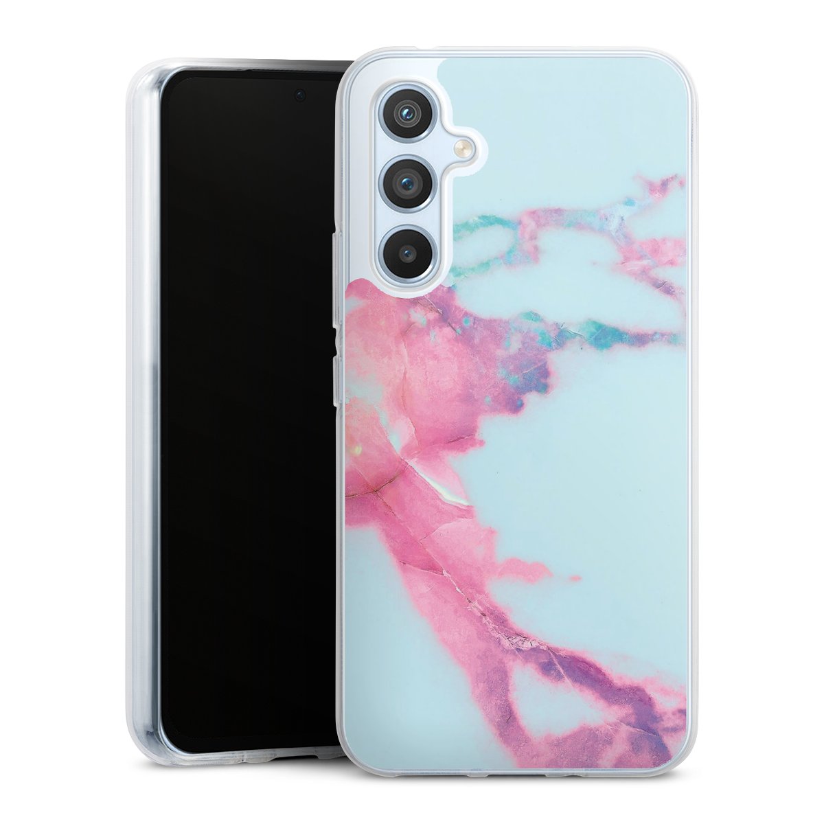 Die flexible Silikonhülle besteht aus robustem TPU (thermoplastisches Polyurethan). Durch das langlebige, bruchsichere Material ist die Hülle biegsam und formbeständig zugleich. Der Klassiker unter unseren Handyhüllen liegt griffig in der Hand. Die Hülle ist in den Farben Transparent, Schwarz und Weiß erhältlich.