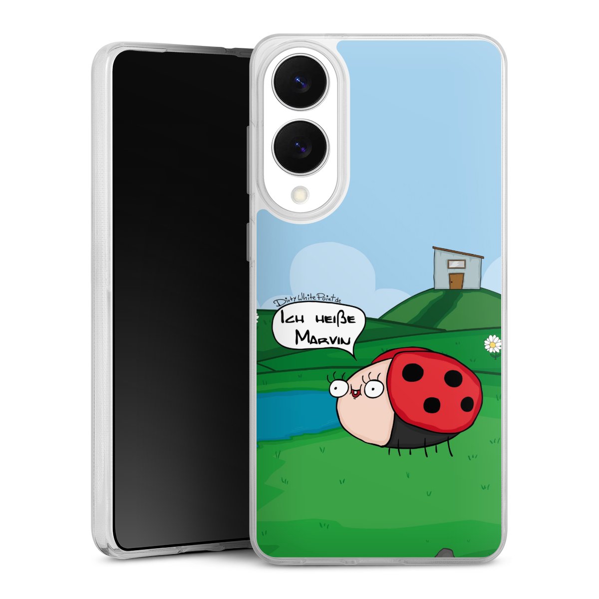 Ob Du Dich nun für Marvin, Günther das Schaf oder doch lieber für die dauerbekiffte Cannabiene entscheidest. Mit einem Motiv von DirtyWhitePaint wird Dein Smartphonen selbst zum Comic.
