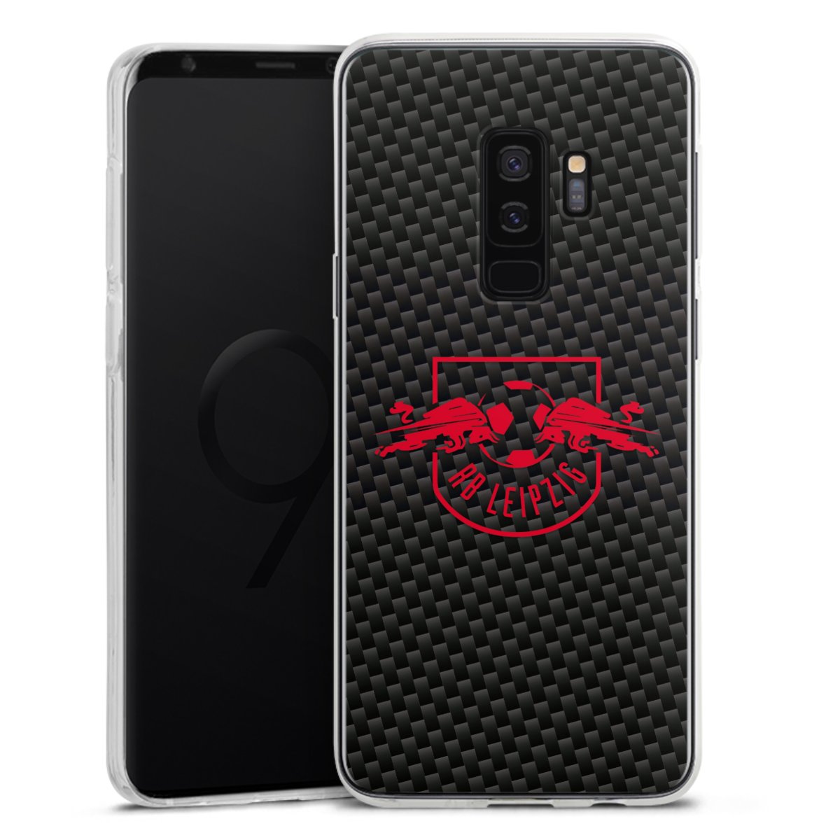 Rotes RB Leipzig Logo auf Carbonoptik