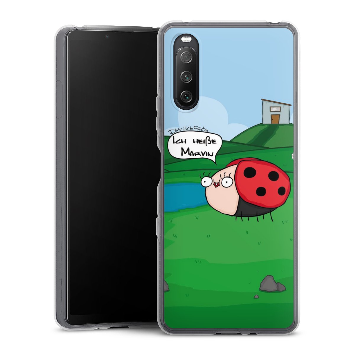 Ob Du Dich nun für Marvin, Günther das Schaf oder doch lieber für die dauerbekiffte Cannabiene entscheidest. Mit einem Motiv von DirtyWhitePaint wird Dein Smartphonen selbst zum Comic.