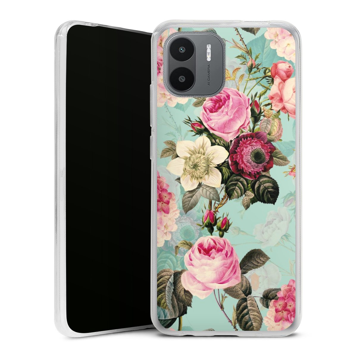 Türkisfarbene Rosentapete