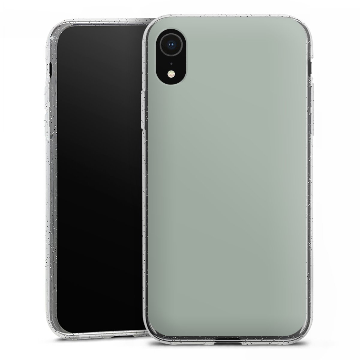 Die flexible Silikonhülle besteht aus robustem TPU (thermoplastisches Polyurethan) mit eingearbeiteten Glitzerpartikeln. Durch das langlebige, bruchsichere Material ist die Hülle biegsam und formbeständig zugleich. Die funkelnde Variante unter unseren Handyhüllen liegt griffig in der Hand und ist in Transparent mit silbernem Glitzer erhältlich.