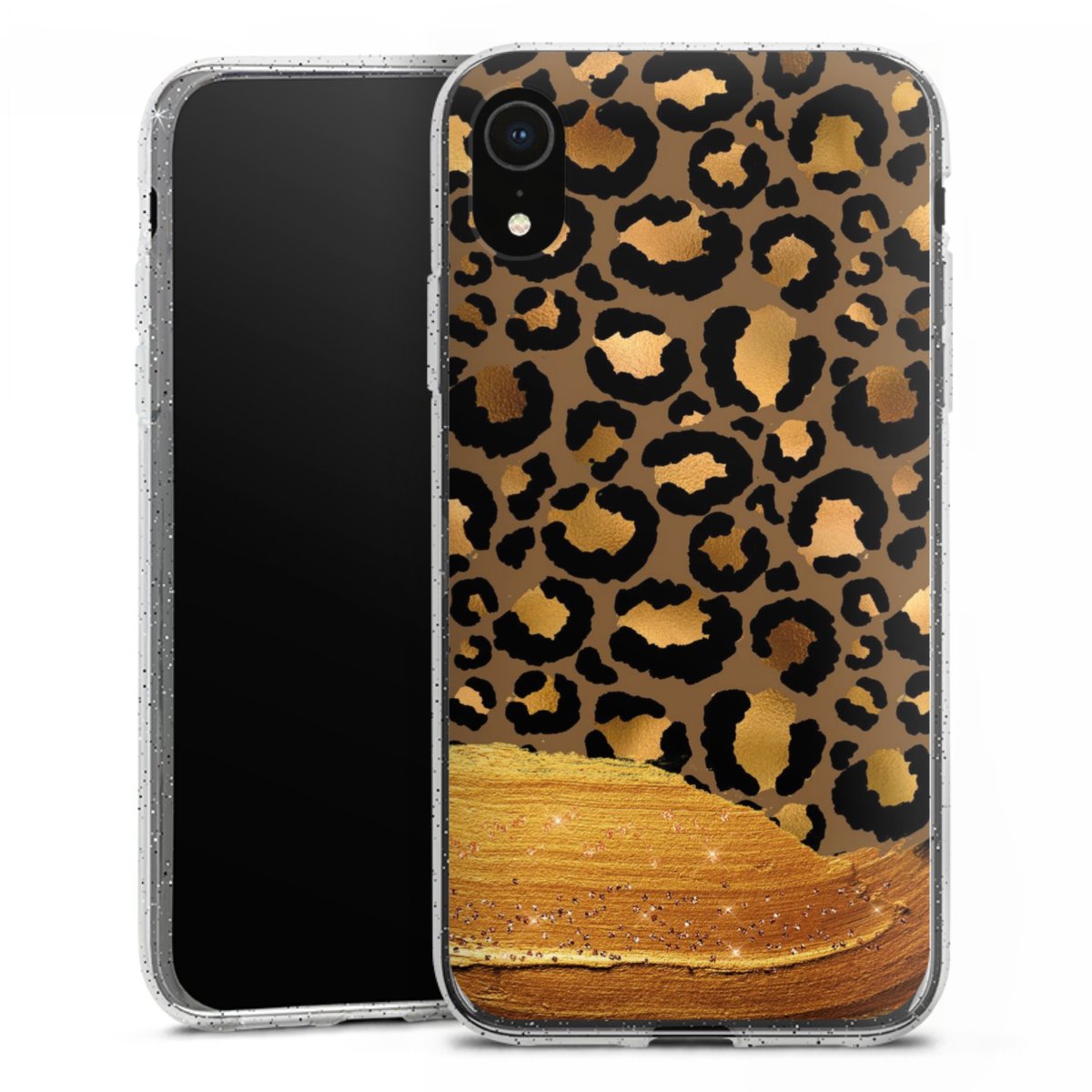 Dunkelgoldener Leoparden Glitzerlook