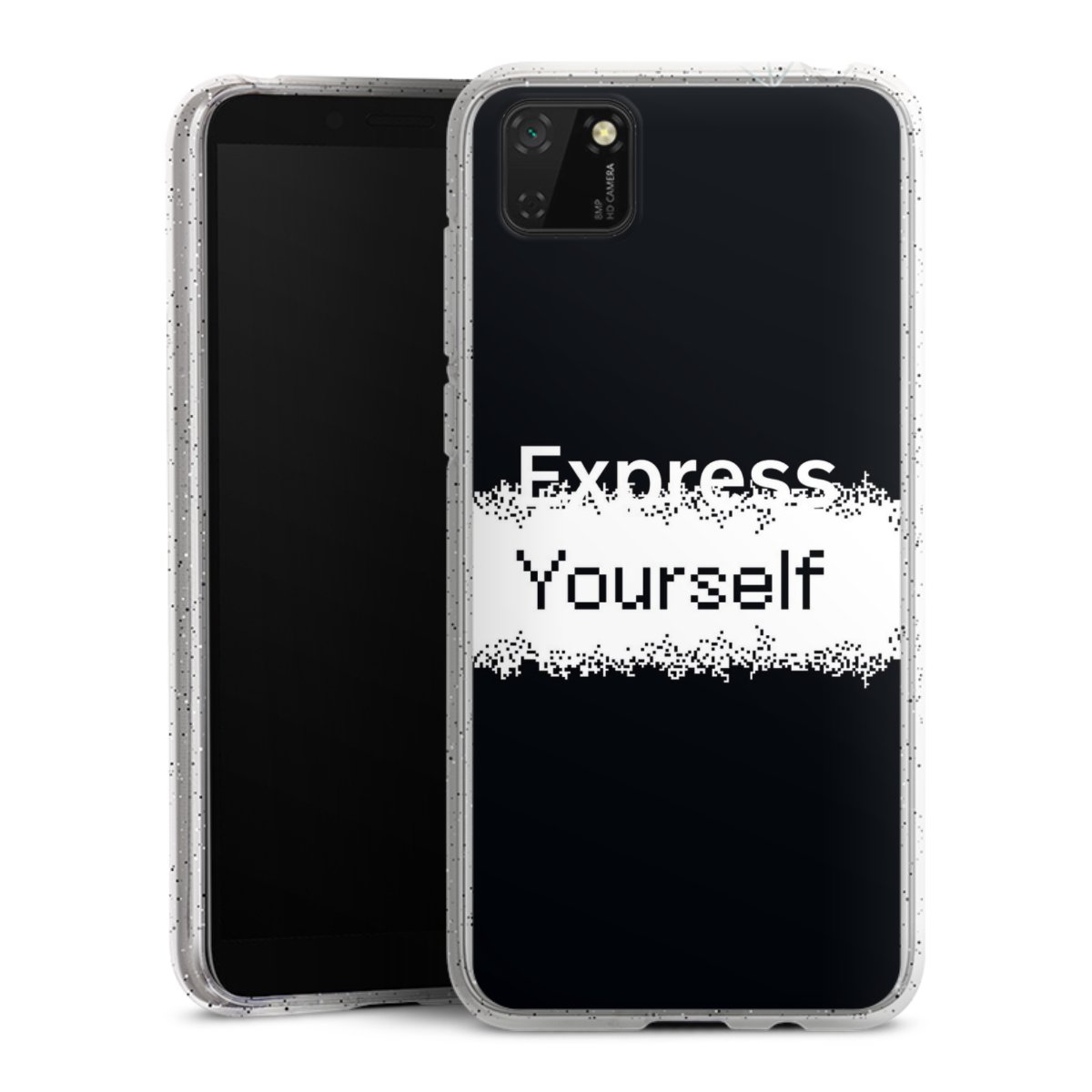 Die flexible Silikonhülle besteht aus robustem TPU (thermoplastisches Polyurethan) mit eingearbeiteten Glitzerpartikeln. Durch das langlebige, bruchsichere Material ist die Hülle biegsam und formbeständig zugleich. Die funkelnde Variante unter unseren Handyhüllen liegt griffig in der Hand und ist in Transparent mit silbernem Glitzer erhältlich.