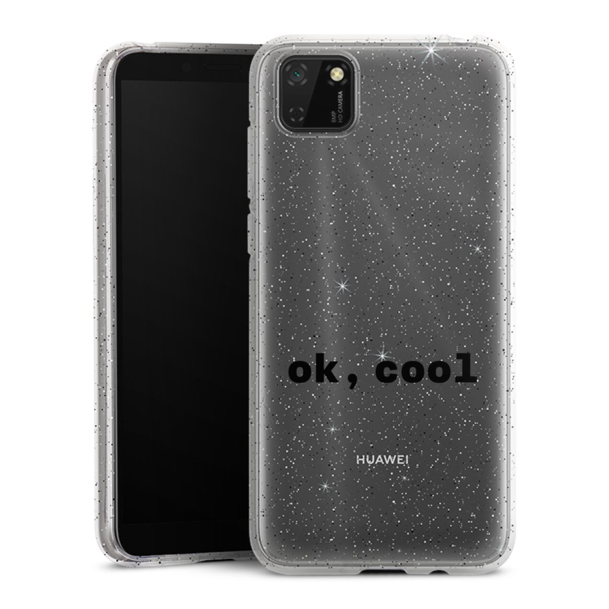 Die flexible Silikonhülle besteht aus robustem TPU (thermoplastisches Polyurethan) mit eingearbeiteten Glitzerpartikeln. Durch das langlebige, bruchsichere Material ist die Hülle biegsam und formbeständig zugleich. Die funkelnde Variante unter unseren Handyhüllen liegt griffig in der Hand und ist in Transparent mit silbernem Glitzer erhältlich.