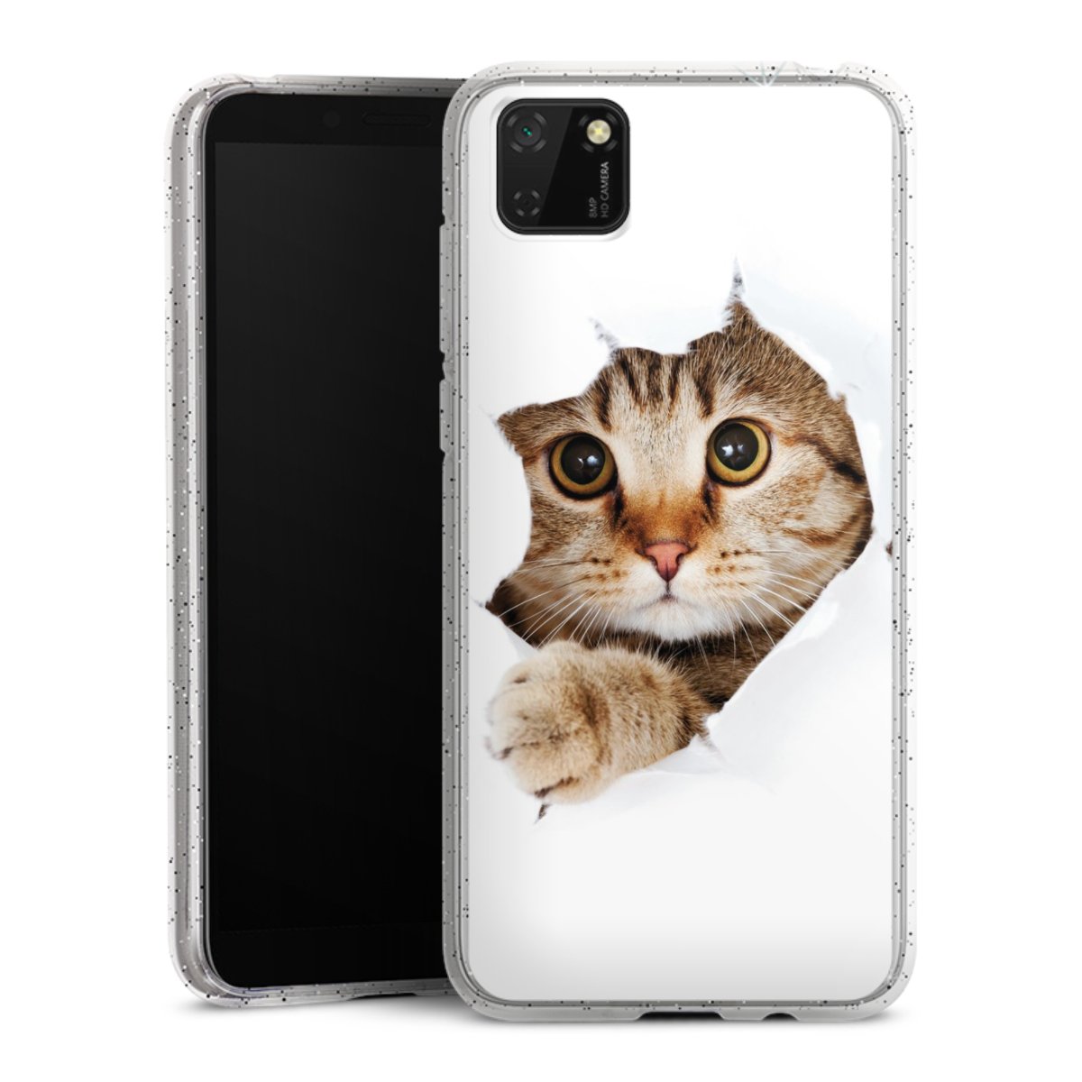 Die flexible Silikonhülle besteht aus robustem TPU (thermoplastisches Polyurethan) mit eingearbeiteten Glitzerpartikeln. Durch das langlebige, bruchsichere Material ist die Hülle biegsam und formbeständig zugleich. Die funkelnde Variante unter unseren Handyhüllen liegt griffig in der Hand und ist in Transparent mit silbernem Glitzer erhältlich.