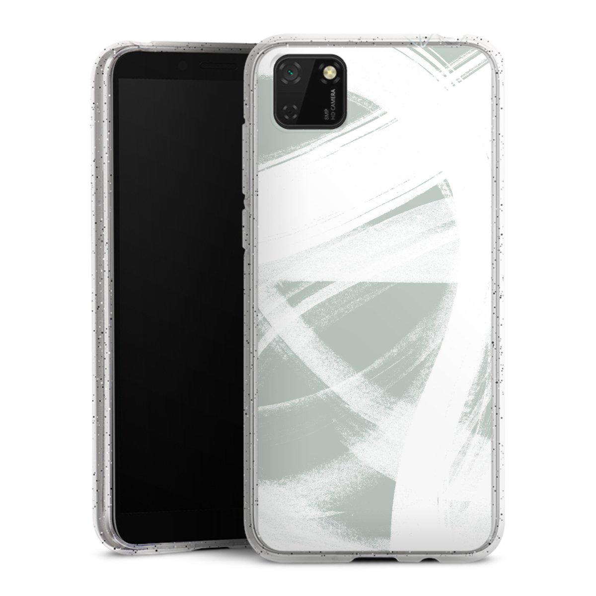 Die flexible Silikonhülle besteht aus robustem TPU (thermoplastisches Polyurethan) mit eingearbeiteten Glitzerpartikeln. Durch das langlebige, bruchsichere Material ist die Hülle biegsam und formbeständig zugleich. Die funkelnde Variante unter unseren Handyhüllen liegt griffig in der Hand und ist in Transparent mit silbernem Glitzer erhältlich.