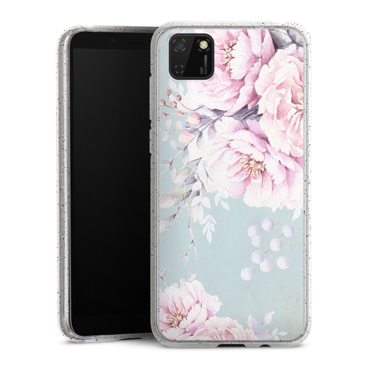 Die flexible Silikonhülle besteht aus robustem TPU (thermoplastisches Polyurethan) mit eingearbeiteten Glitzerpartikeln. Durch das langlebige, bruchsichere Material ist die Hülle biegsam und formbeständig zugleich. Die funkelnde Variante unter unseren Handyhüllen liegt griffig in der Hand und ist in Transparent mit silbernem Glitzer erhältlich.