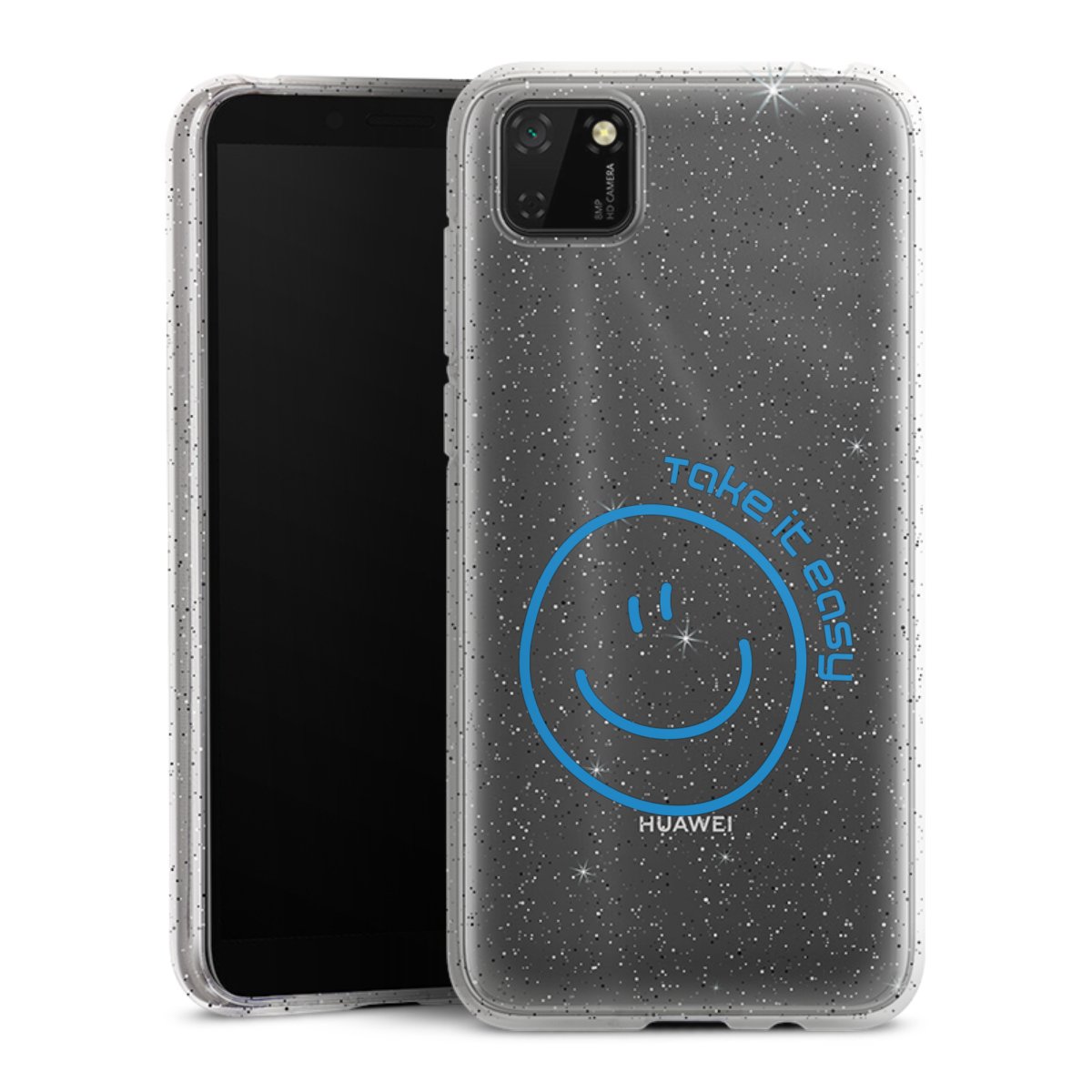 Die flexible Silikonhülle besteht aus robustem TPU (thermoplastisches Polyurethan) mit eingearbeiteten Glitzerpartikeln. Durch das langlebige, bruchsichere Material ist die Hülle biegsam und formbeständig zugleich. Die funkelnde Variante unter unseren Handyhüllen liegt griffig in der Hand und ist in Transparent mit silbernem Glitzer erhältlich.