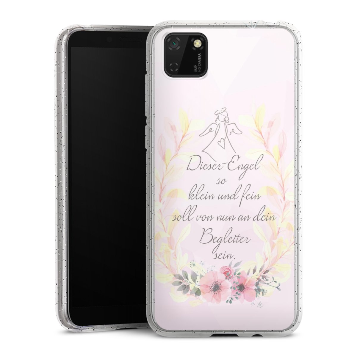Die flexible Silikonhülle besteht aus robustem TPU (thermoplastisches Polyurethan) mit eingearbeiteten Glitzerpartikeln. Durch das langlebige, bruchsichere Material ist die Hülle biegsam und formbeständig zugleich. Die funkelnde Variante unter unseren Handyhüllen liegt griffig in der Hand und ist in Transparent mit silbernem Glitzer erhältlich.