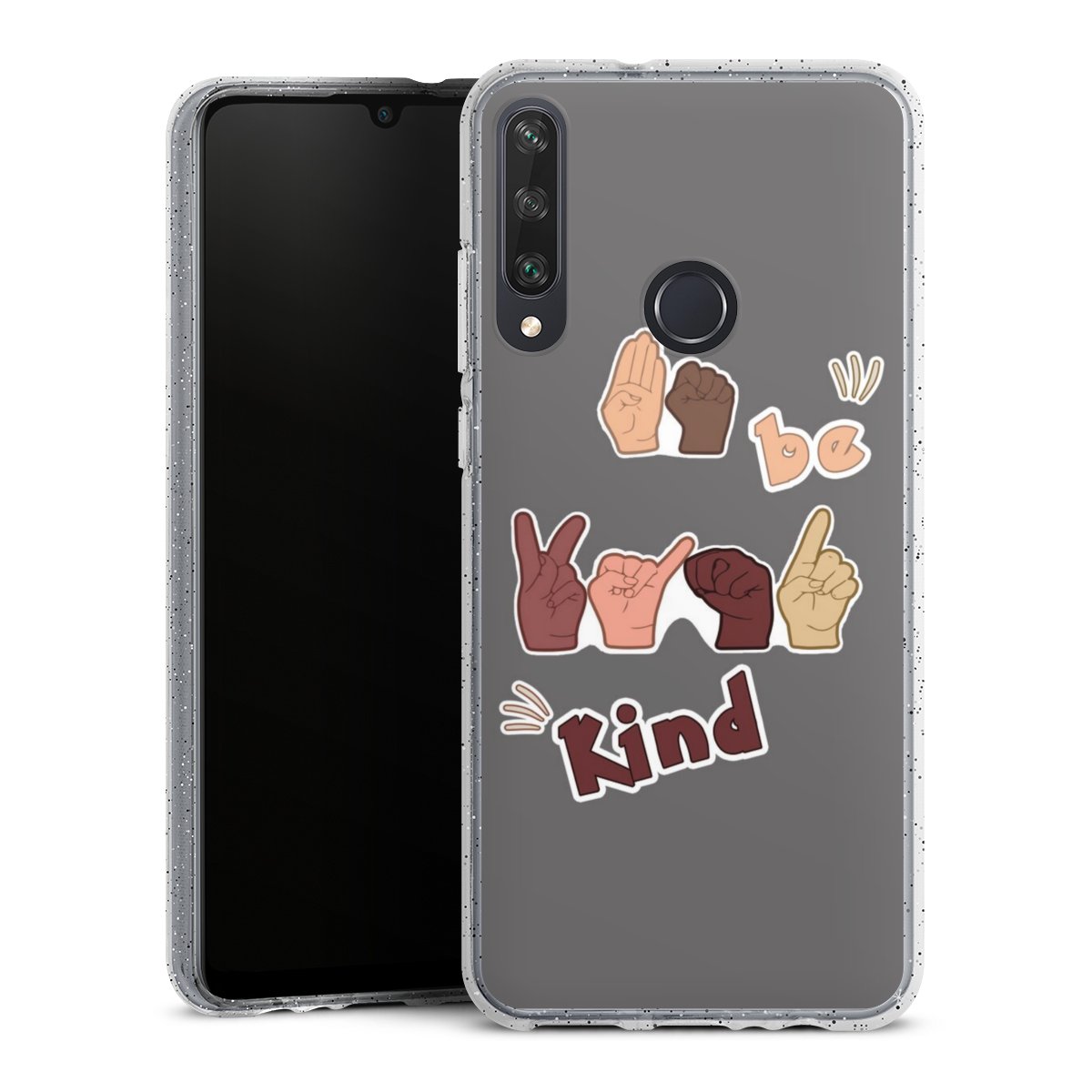 Die flexible Silikonhülle besteht aus robustem TPU (thermoplastisches Polyurethan) mit eingearbeiteten Glitzerpartikeln. Durch das langlebige, bruchsichere Material ist die Hülle biegsam und formbeständig zugleich. Die funkelnde Variante unter unseren Handyhüllen liegt griffig in der Hand und ist in Transparent mit silbernem Glitzer erhältlich.