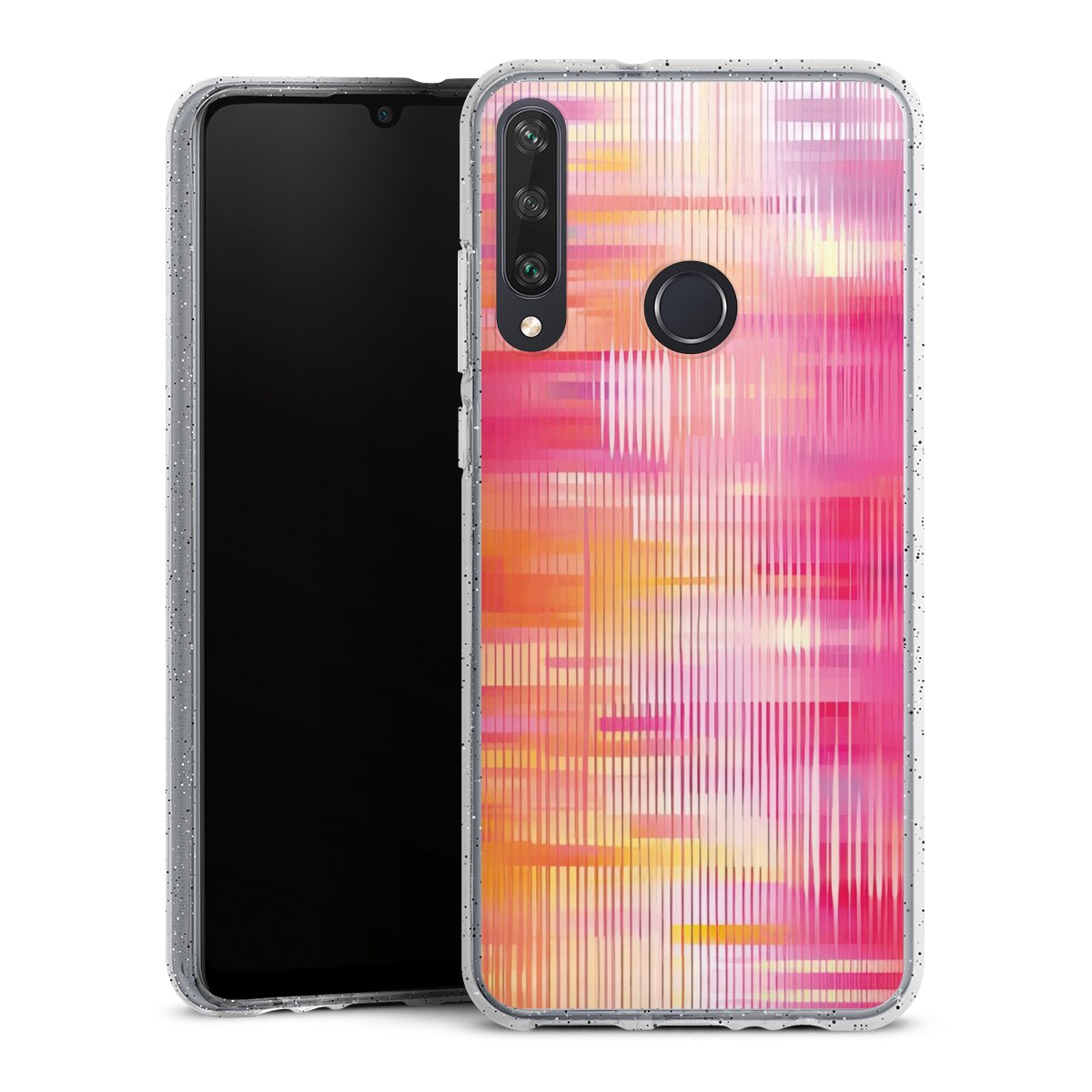 Die flexible Silikonhülle besteht aus robustem TPU (thermoplastisches Polyurethan) mit eingearbeiteten Glitzerpartikeln. Durch das langlebige, bruchsichere Material ist die Hülle biegsam und formbeständig zugleich. Die funkelnde Variante unter unseren Handyhüllen liegt griffig in der Hand und ist in Transparent mit silbernem Glitzer erhältlich.