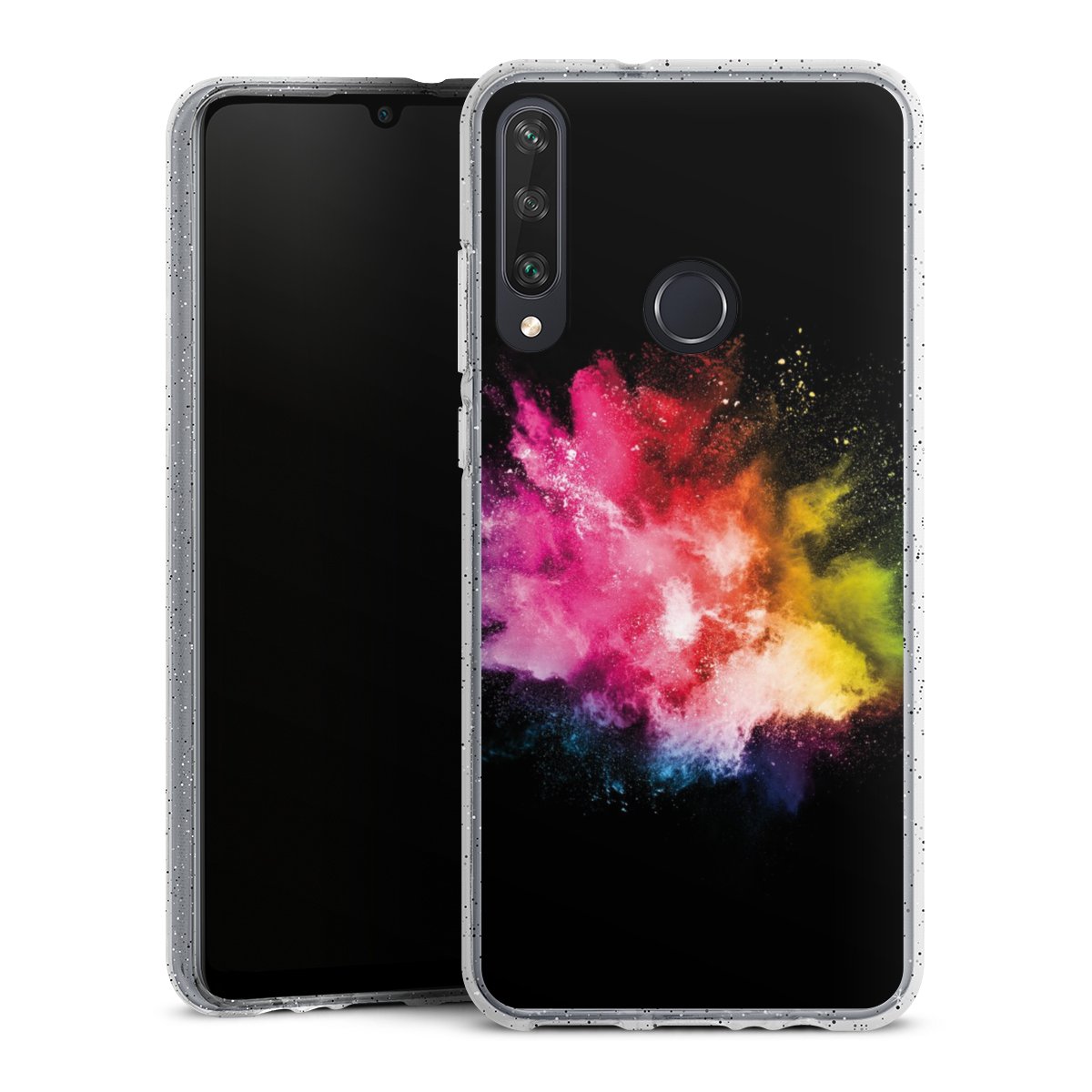 Die flexible Silikonhülle besteht aus robustem TPU (thermoplastisches Polyurethan) mit eingearbeiteten Glitzerpartikeln. Durch das langlebige, bruchsichere Material ist die Hülle biegsam und formbeständig zugleich. Die funkelnde Variante unter unseren Handyhüllen liegt griffig in der Hand und ist in Transparent mit silbernem Glitzer erhältlich.