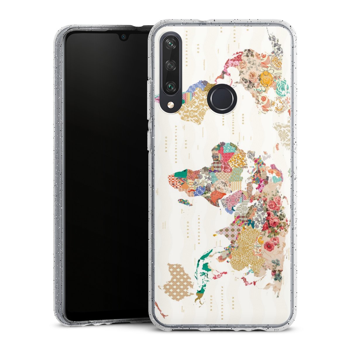 Die flexible Silikonhülle besteht aus robustem TPU (thermoplastisches Polyurethan) mit eingearbeiteten Glitzerpartikeln. Durch das langlebige, bruchsichere Material ist die Hülle biegsam und formbeständig zugleich. Die funkelnde Variante unter unseren Handyhüllen liegt griffig in der Hand und ist in Transparent mit silbernem Glitzer erhältlich.
