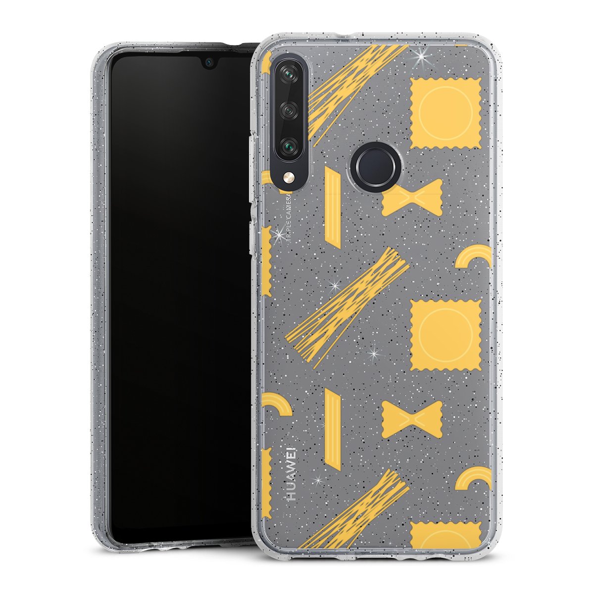 Die flexible Silikonhülle besteht aus robustem TPU (thermoplastisches Polyurethan) mit eingearbeiteten Glitzerpartikeln. Durch das langlebige, bruchsichere Material ist die Hülle biegsam und formbeständig zugleich. Die funkelnde Variante unter unseren Handyhüllen liegt griffig in der Hand und ist in Transparent mit silbernem Glitzer erhältlich.