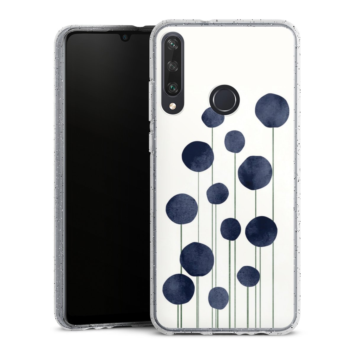 Die flexible Silikonhülle besteht aus robustem TPU (thermoplastisches Polyurethan) mit eingearbeiteten Glitzerpartikeln. Durch das langlebige, bruchsichere Material ist die Hülle biegsam und formbeständig zugleich. Die funkelnde Variante unter unseren Handyhüllen liegt griffig in der Hand und ist in Transparent mit silbernem Glitzer erhältlich.
