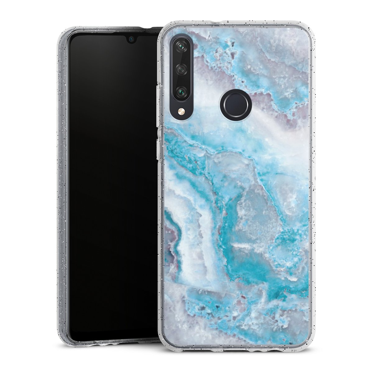Die flexible Silikonhülle besteht aus robustem TPU (thermoplastisches Polyurethan) mit eingearbeiteten Glitzerpartikeln. Durch das langlebige, bruchsichere Material ist die Hülle biegsam und formbeständig zugleich. Die funkelnde Variante unter unseren Handyhüllen liegt griffig in der Hand und ist in Transparent mit silbernem Glitzer erhältlich.