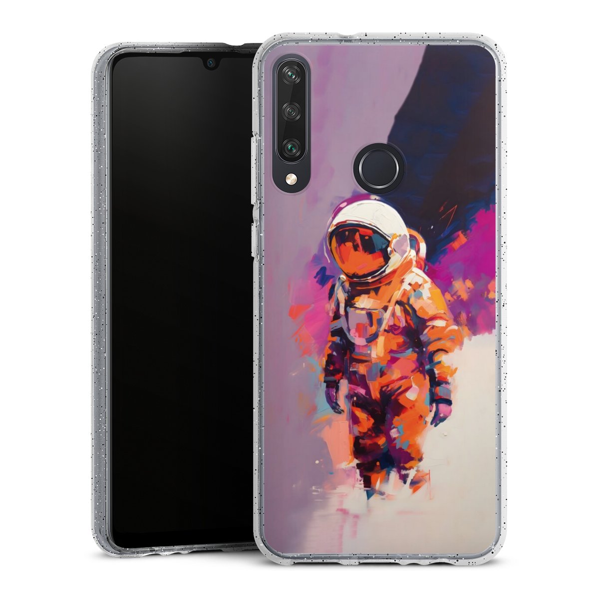 Die flexible Silikonhülle besteht aus robustem TPU (thermoplastisches Polyurethan) mit eingearbeiteten Glitzerpartikeln. Durch das langlebige, bruchsichere Material ist die Hülle biegsam und formbeständig zugleich. Die funkelnde Variante unter unseren Handyhüllen liegt griffig in der Hand und ist in Transparent mit silbernem Glitzer erhältlich.