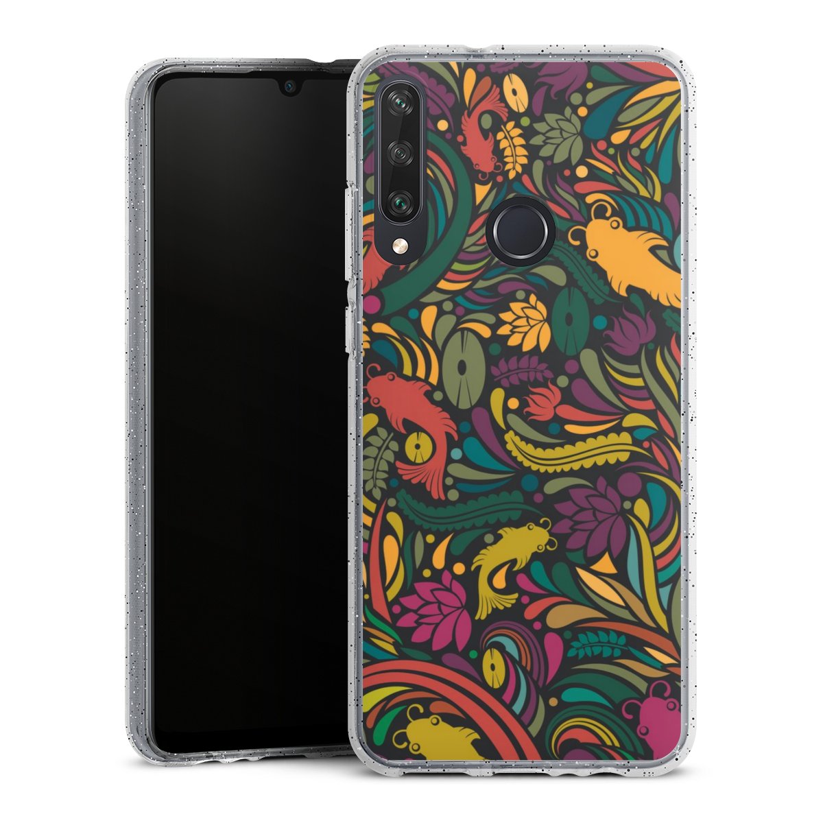 Die flexible Silikonhülle besteht aus robustem TPU (thermoplastisches Polyurethan) mit eingearbeiteten Glitzerpartikeln. Durch das langlebige, bruchsichere Material ist die Hülle biegsam und formbeständig zugleich. Die funkelnde Variante unter unseren Handyhüllen liegt griffig in der Hand und ist in Transparent mit silbernem Glitzer erhältlich.