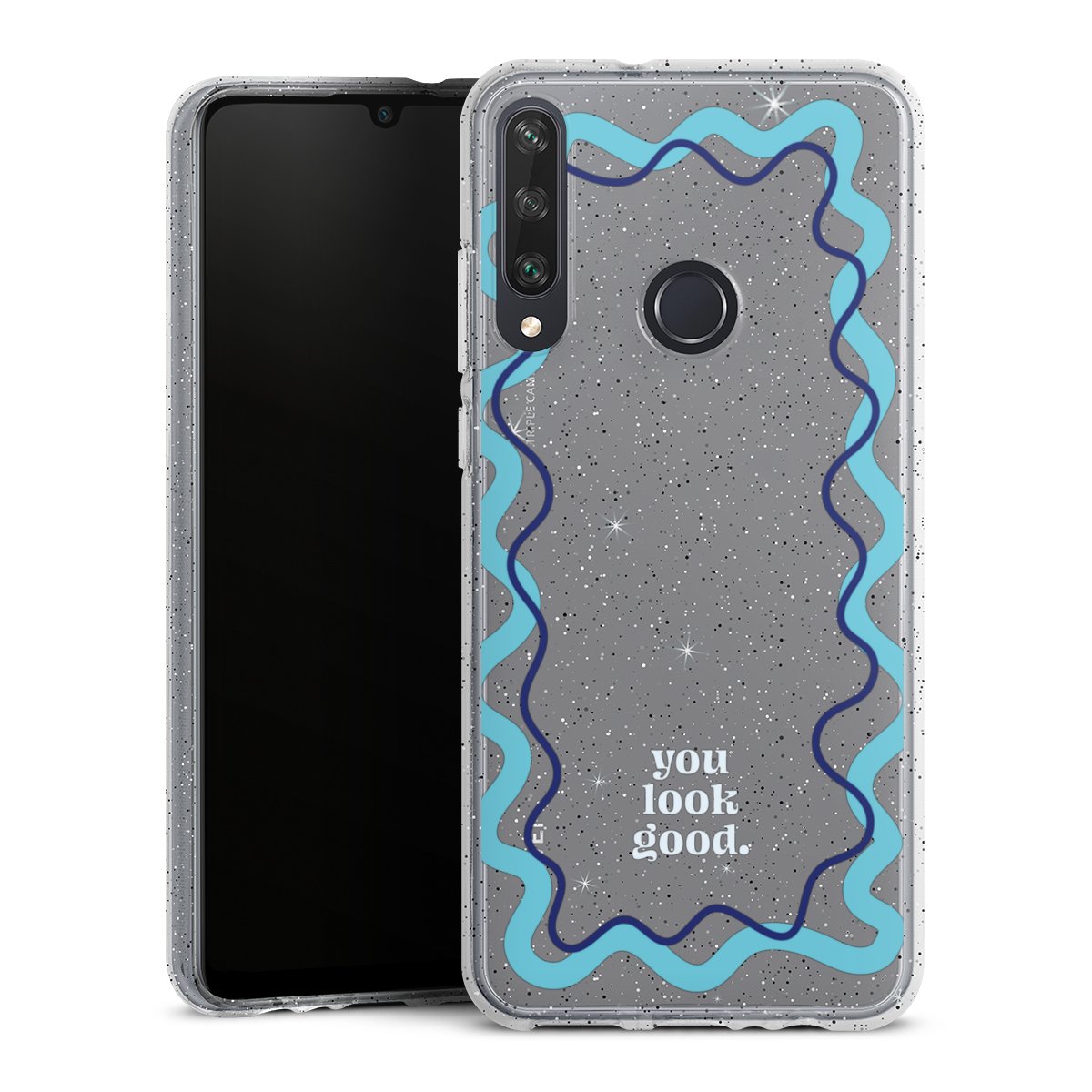 Die flexible Silikonhülle besteht aus robustem TPU (thermoplastisches Polyurethan) mit eingearbeiteten Glitzerpartikeln. Durch das langlebige, bruchsichere Material ist die Hülle biegsam und formbeständig zugleich. Die funkelnde Variante unter unseren Handyhüllen liegt griffig in der Hand und ist in Transparent mit silbernem Glitzer erhältlich.